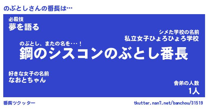 | 意味不明あだ名 | 『ペロリンのぶとし』『永久保存のぶとし』 |