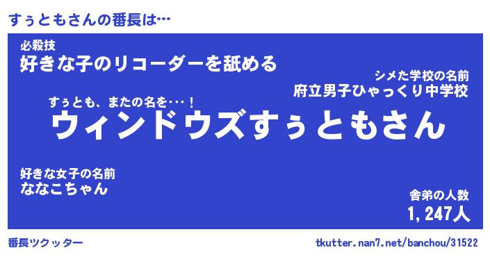 | 意味不明あだ名 | 『ペロリンすぅとも』『永久保存すぅとも』 |