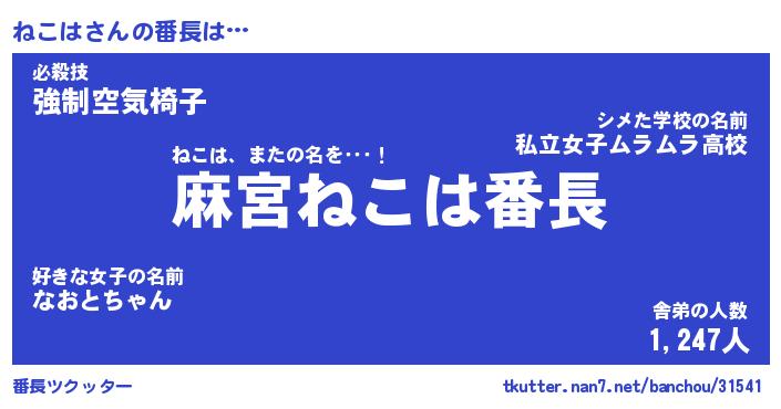 | 2回繰り返すあだ名 | 『ねこねこ』『ねねここ』『なあなあ』 |