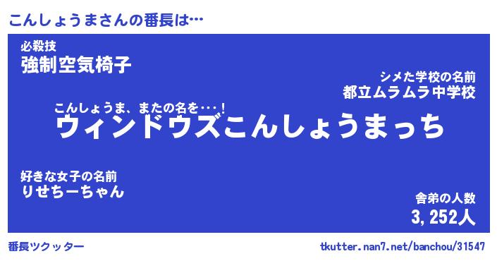 | 男性向けラノベタイトル風あだ名 | 『こんしょうまの憂鬱』 |
