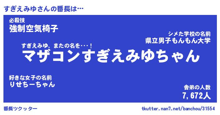 | 肩書あだ名 | 『すぎえみゆ社長令嬢』『すぎえみゆ班長』 |