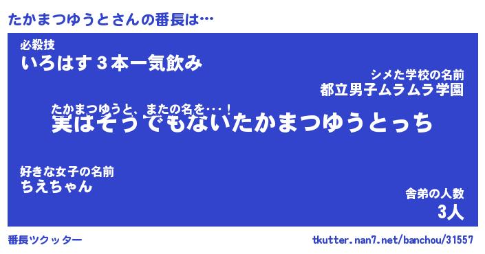 | 恥ずかしいあだ名 | 『プリティーたかまつゆうと』『たかちん』 |