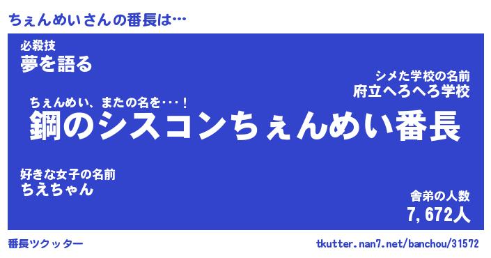 | ヘコむあだ名 | 『ちぇもー』『豆乳』『ちぇぷりん』 |