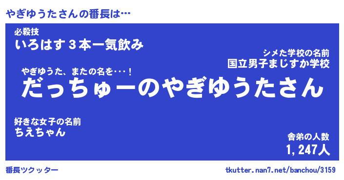| 伝説のあだ名 | 『伝説のスナイパーやぎゆうた』 |