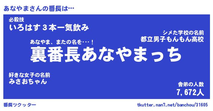 | ヒーロー風カッコイイあだ名 | 『スーパーアナヤマ』『銀牙騎士アナ』 |