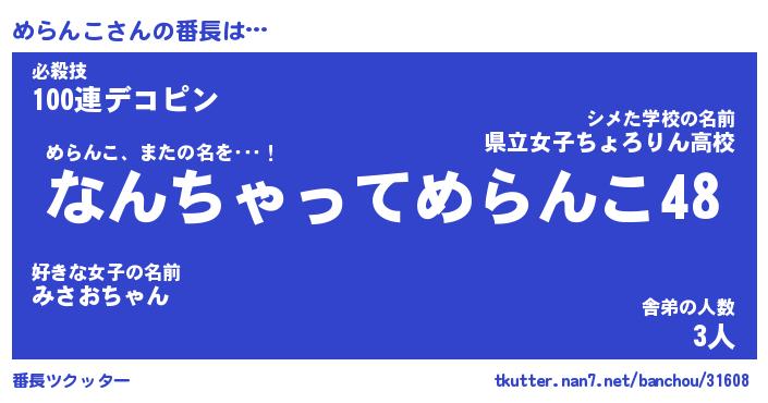 | 意味不明あだ名 | 『ペロリンめらんこ』『永久保存めらんこ』 |