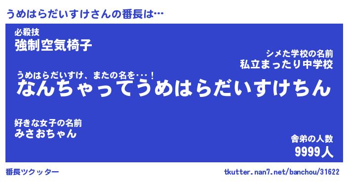 | ヒーロー風カッコイイあだ名 | 『スーパーウメハラダイスケ』 |