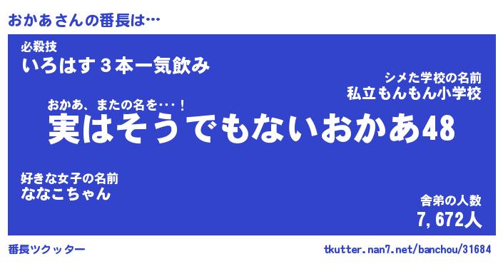 | 意味不明あだ名 | 『ペロリンおかあ』『おかあフォーエバー』 |