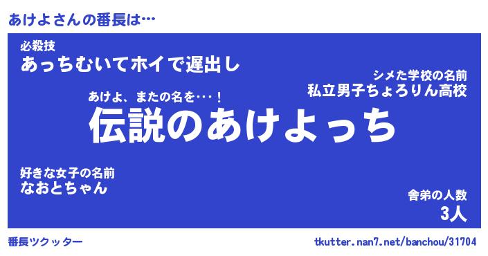 | ポケモン風あだ名 | 『アケチュウ』『アケヨダネ』 |