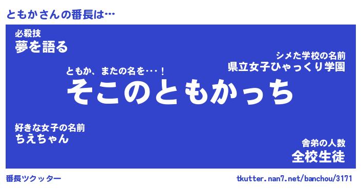 | 肩書あだ名 | 『ともか御曹司』『ともか国家主席』 |