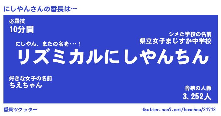 | 意味不明あだ名 | 『ペロリンにしやん』『永久保存にしやん』 |