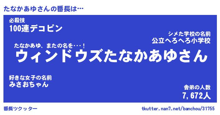 | 肩書あだ名 | 『たなかあゆ社長令嬢』『たなかあゆ団長』 |