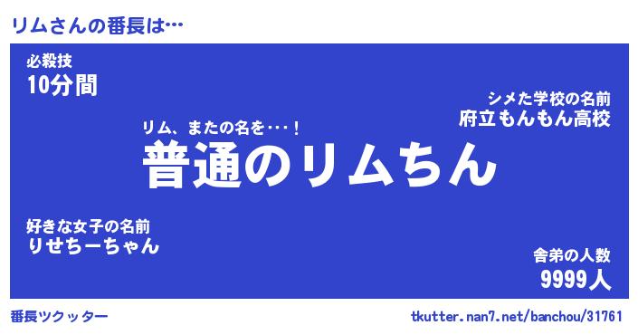 | ヘコむあだ名 | 『リムもー』『牛乳』『リム太郎』 |