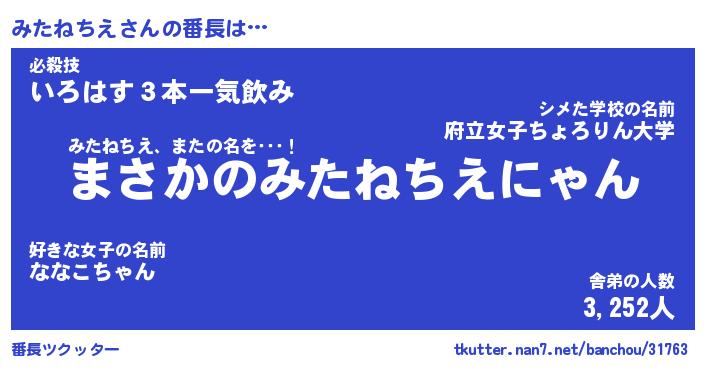 | ポケモン風あだ名 | 『ミタチュウ』『ミタネダネ』 |