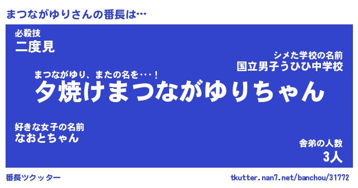 | ヒーロー風カッコイイあだ名 | 『スーパーマツナガユリ』『魔戒騎士マツ』 |