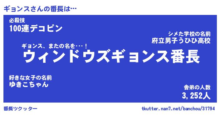| ピコ太郎風あだ名 | 『ギコ六郎』『ピギ次郎』『ギョ十郎』 |