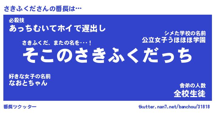 | 男性向けラノベタイトル風あだ名 | 『さきふくだの憂鬱』 |