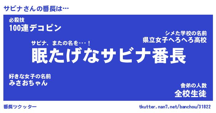 | ファンタジー風あだ名 | 『サビフェル』『エターナルサビナー』 |