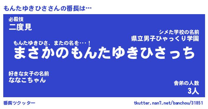 | 伝説のあだ名 | 『伝説のスナイパーもんたゆきひさ』 |
