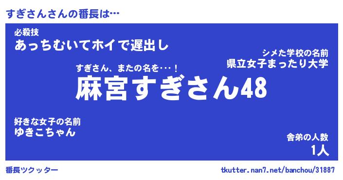 | 意味不明あだ名 | 『ペロリンすぎさん』『永久保存すぎさん』 |