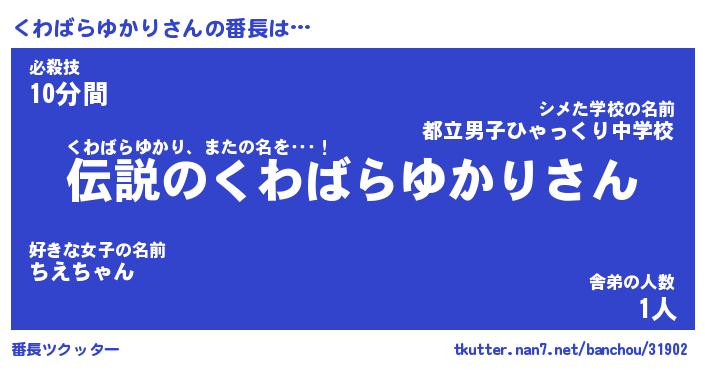 | 伝説のあだ名 | 『伝説のスナイパーくわばらゆかり』 |