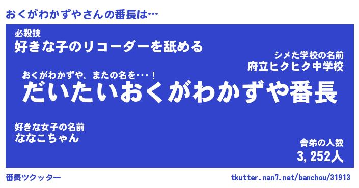 | 肩書あだ名 | 『おくがわかずや店長』 |