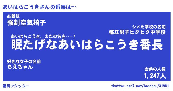 | 伝説のあだ名 | 『封印されし傭兵あいはらこうき』 |