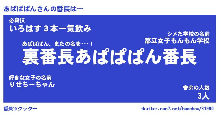 | 肩書あだ名 | 『あぱぱぱん社長令嬢』『あぱぱぱん班長』 |