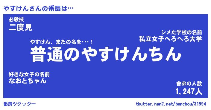 | 意味不明あだ名 | 『ペロリンやすけん』『永久保存やすけん』 |