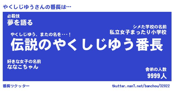 | 肩書あだ名 | 『やくしじゆう店長』『やくしじゆう団長』 |