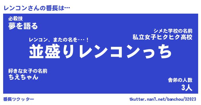 | ヘコむあだ名 | 『レンにゅー』『豆乳』『レンぷりん』 |