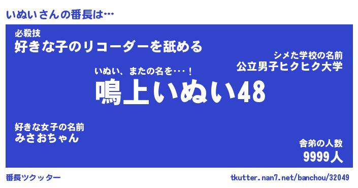 | ヘコむあだ名 | 『いぬにー』『つくし』『いぬを』 |
