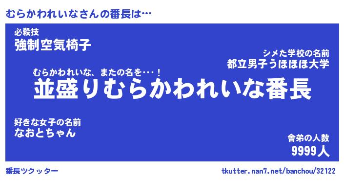 | 2回繰り返すあだ名 | 『むらむら』『むむらら』『くねくね』 |