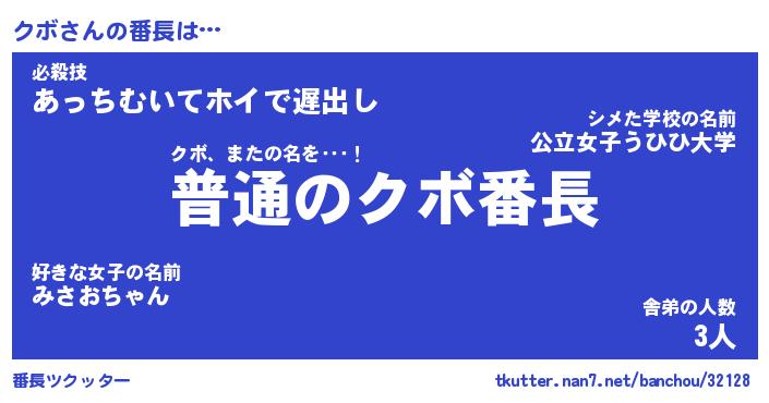 | ヒーロー風カッコイイあだ名 | 『スーパークボ』『ウルトラクボマン』 |