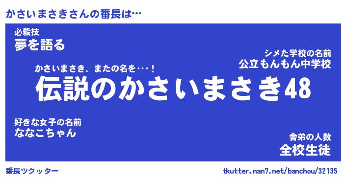 | ヒーロー風カッコイイあだ名 | 『スーパーカサイマサキ』『暗黒騎士カサ』 |