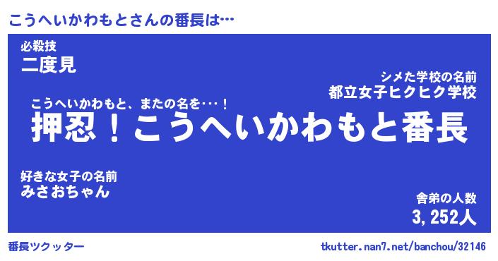 | 伝説のあだ名 | 『封印されしスナイパーこうへいかわもと』 |