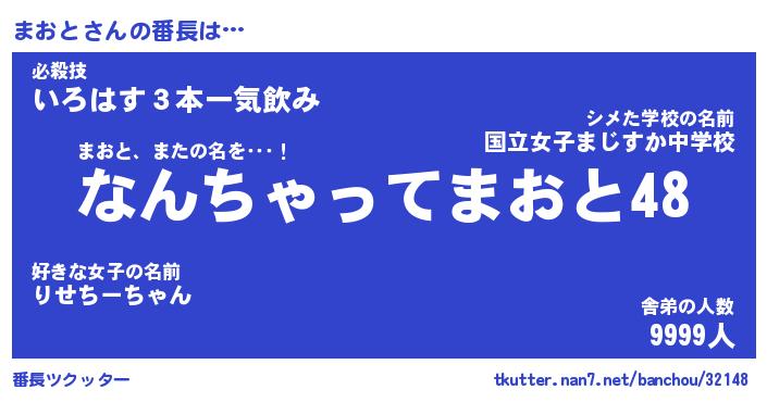 | 肩書あだ名 | 『まおと店長』『まおと総理大臣』 |