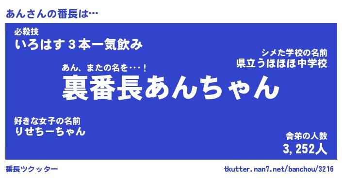 | 2回繰り返すあだ名 | 『あんあん』『ああんん』『ぎざぎざ』 |