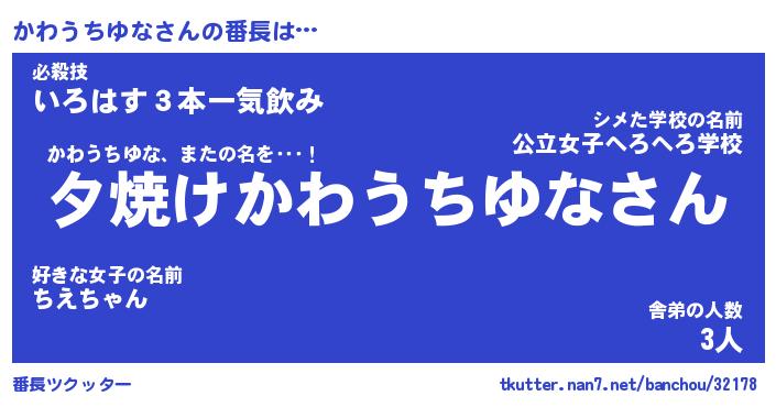 | 肩書あだ名 | 『かわうちゆな御曹司』 |