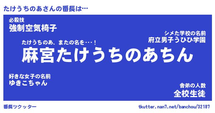 | ポケモン風あだ名 | 『タケチュウ』『タケウダネ』 |