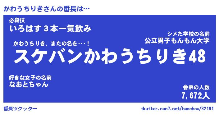 | ヒーロー風カッコイイあだ名 | 『スーパーカワウチリキ』『幻影騎士カワ』 |
