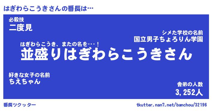 | 伝説のあだ名 | 『不死鳥のスナイパーはぎわらこうき』 |