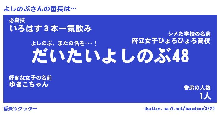 | ファンタジー風あだ名 | 『ヨシフェル』『エターナルヨシノブー』 |