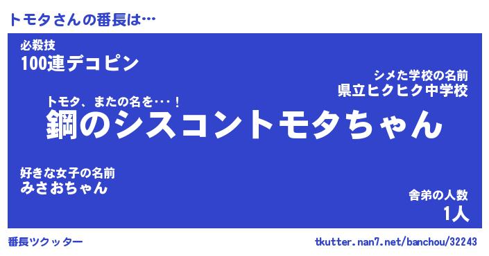 | 意味不明あだ名 | 『ペロリントモタ』『トモタフォーエバー』 |
