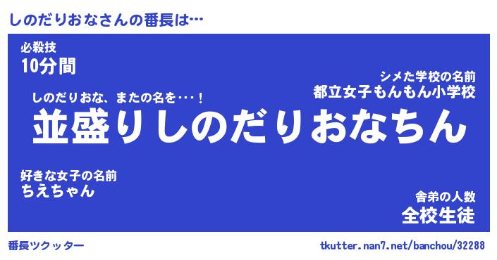 | 伝説のあだ名 | 『不死鳥のスナイパーしのだりおな』 |