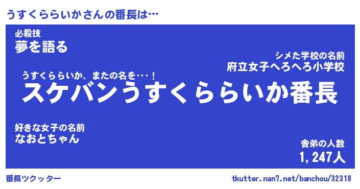 | ポケモン風あだ名 | 『ウスチュウ』『ウスクダネ』 |
