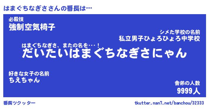 | ヒーロー風カッコイイあだ名 | 『スーパーハマグチナギサ』 |