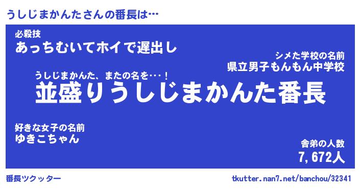 | 男性向けラノベタイトル風あだ名 | 『うしじまかんたの憂鬱』 |