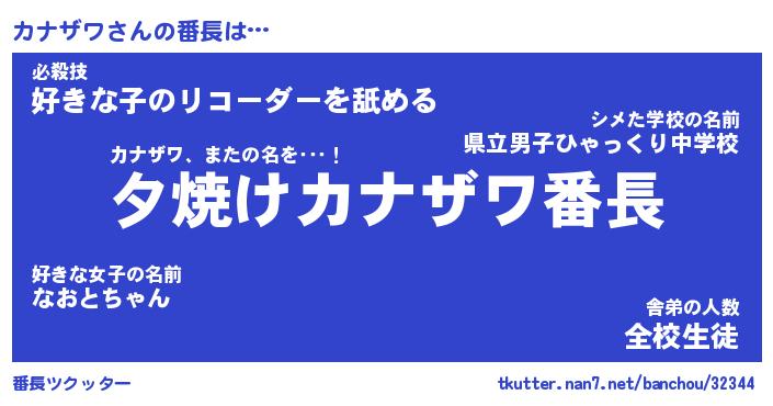 | 意味不明あだ名 | 『ペロリンカナザワ』『永久保存カナザワ』 |
