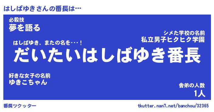 | ファンタジー風あだ名 | 『ハシフェル』『エターナルハシバユキー』 |